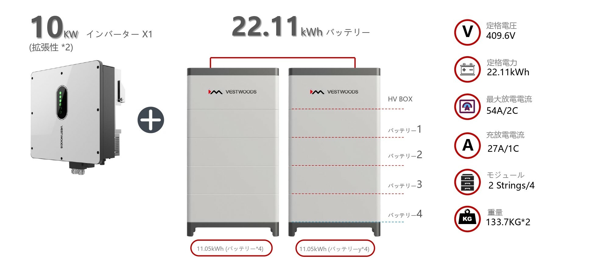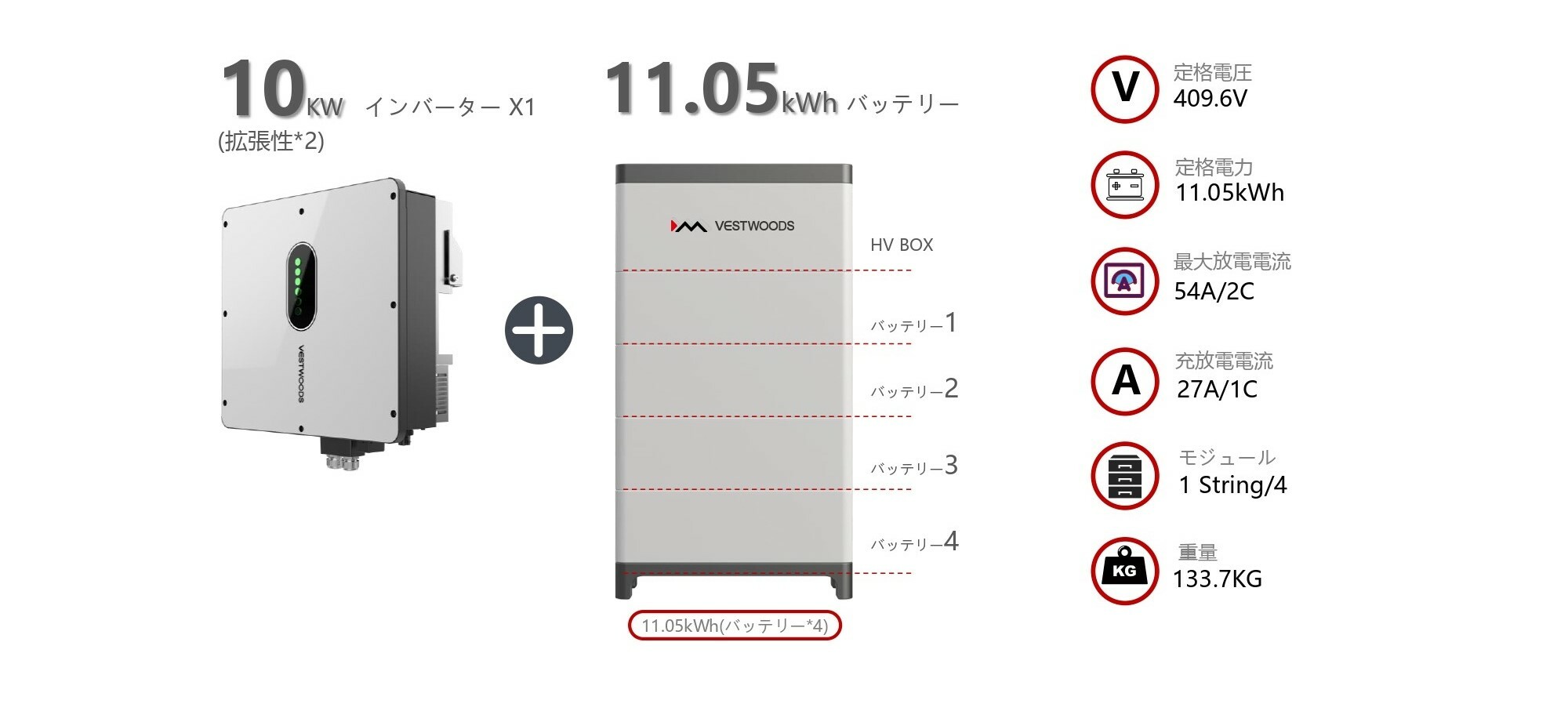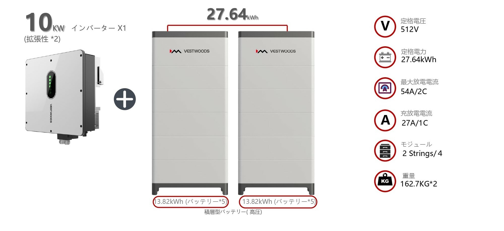 單顆電池2.75KWh,依照供電量需求選擇合適的家用儲能規格,自由配置8KWh~27.64KWh。
